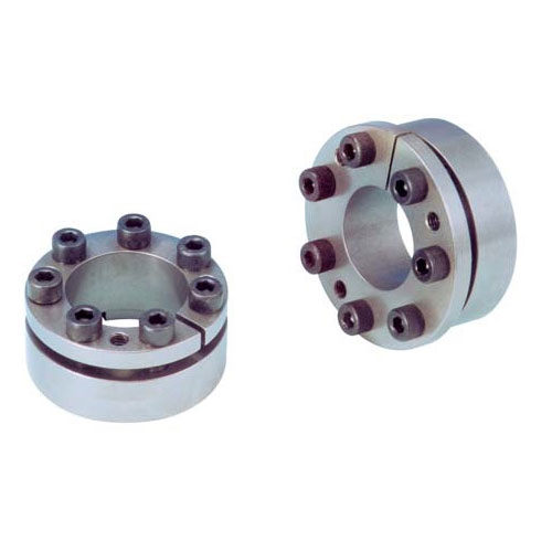 適用性強,在一般機械聯結中應用廣泛。在壓緊螺釘的作用下,內外環錐面相對運動,產生徑向壓力的摩擦力,將輪